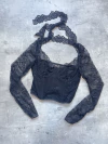 Corset de encaje forrado adelante con algodòn, mangas largas con ballenas delanteras y corpìño con arco. Tiene tira de encaje para atar al cuello estilo chocker. Talles S - M.